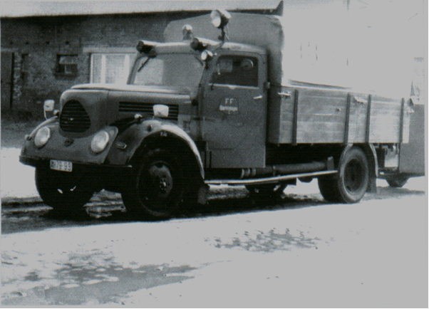 Von rechts: Gruppenführer Wolfgang Wendler, Bruno Fischer, Günter Martens, K. Heinz Schwarz, Hans Kuse, Werner Wilken, Bruno Garling, Fred Tack, Erwin Dreher. Mitte der siebziger Jahre wurde dann ein gebrauchtes Feuerwehrauto angeschafft.